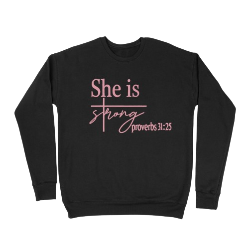 This crewneck sweater is a statement of strength and confidence. Embroidered across the chest with the words “She Is Strong,” it’s crafted from premium cotton for a soft, comfortable fit and long-lasting quality. Cozy, versatile, and empowering—this sweater is made to be worn with pride.